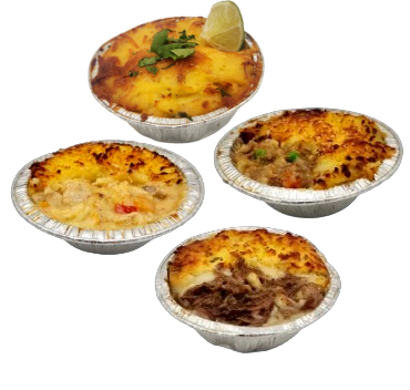✔ Shepherd’s Pie (Lamb & Beef) – A rich lamb & beef filling with vegetables and a cheesy potato crust.